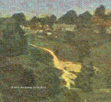 Road going down the hill (centre, near the top), whilst the