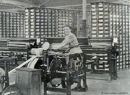 The photograph of a cheerful young mill worker is taken from