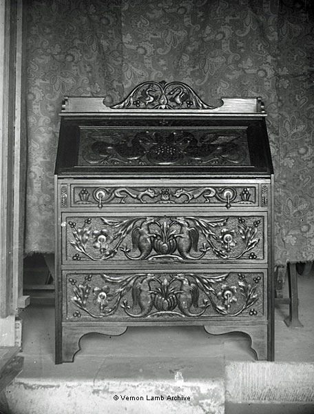 piece was photographed inside a cabinet maker's workshop. A makeshift