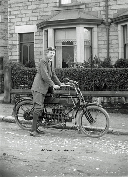 motor cycle registration number DB 186. The cycle, a four-cylinder