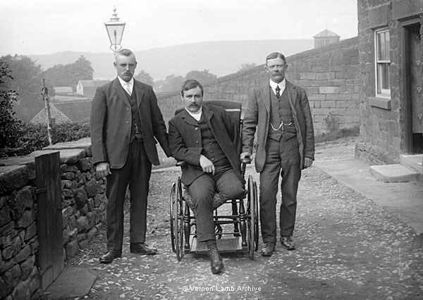 Three men, one in wheelchair. There are several