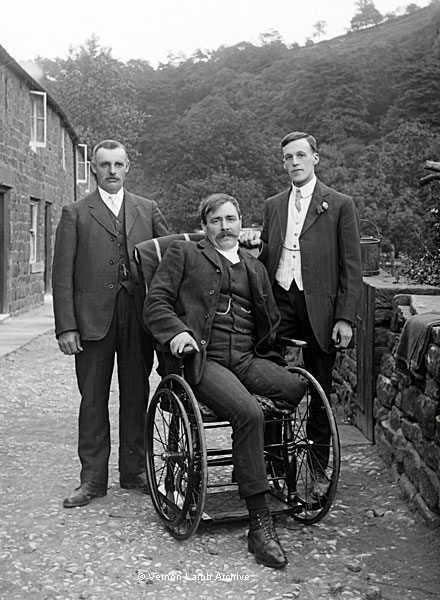 Three men, one in a wheelchair. There are several photos of this family [see VLA5090,
