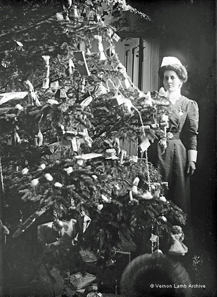 Decorated Christmas tree at a hydro, with nurse