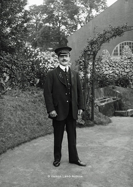 Porter or perhaps doorman. Wearing uniform, with hydro's name embroidered on his collar and hat. Also see