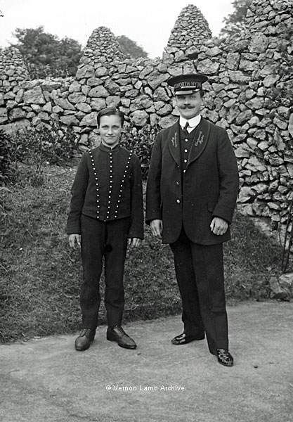 Doorman and bell boy / porter together. Wearing hydro's uniform.