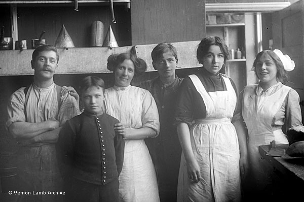 Young boy in uniform (a hydro buttons?) and others, some of whom are also shown in