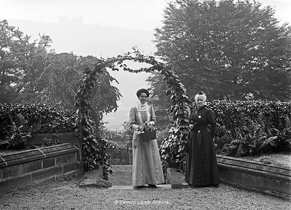 Two women in the garden, the younger of whom is