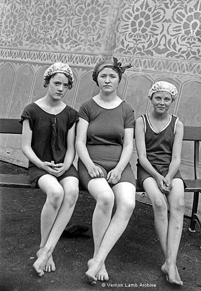 woollen swimming costumes, possibly swimming in a gala. They