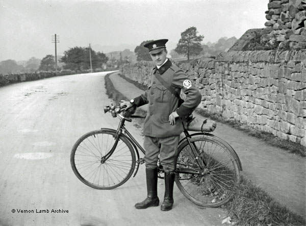 The local AA (Automobile Association) patrolman before the First World War, with his bicycle. Uniforms were not